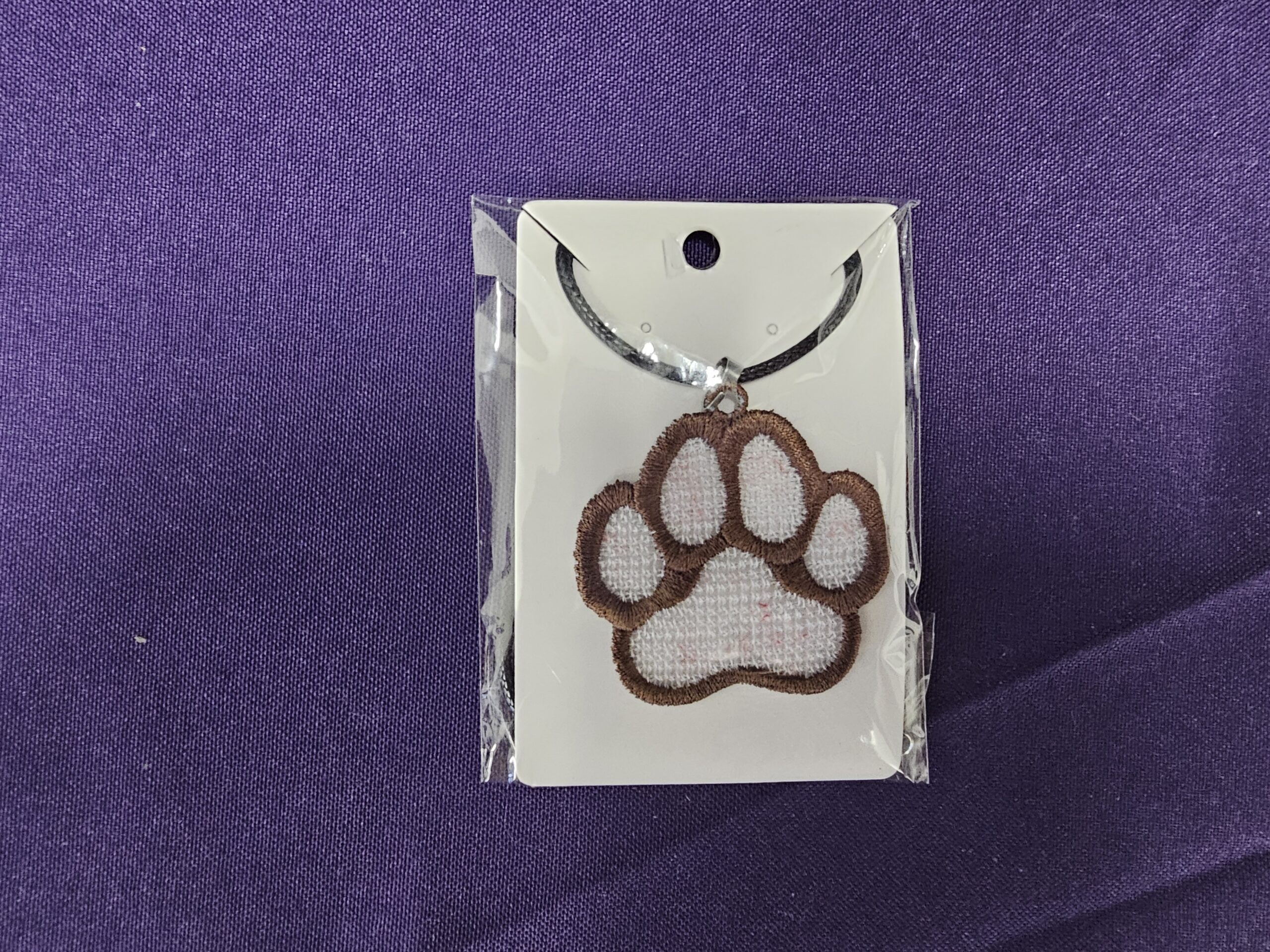 Showcase your affection for your furry friends with our charming embroidered paw print necklace. The delicately embroidered paw print pendant hangs from a sleek black cord, offering a unique blend of warmth and modern style.
